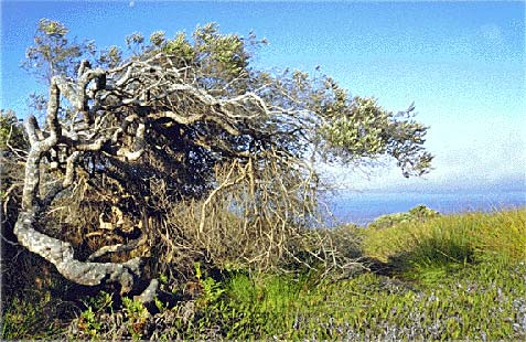 PhylicaAmsterdam Island is the only French subantarctic island with a native tree: the Phylica (Phylica nitida), which can also be found on Tristan de Cunha (British), a remote group of volcanic islands in the South Atlantic Ocean. Belonging to the Rhamnacea family, the Phylica has small, narrow leaves, honey-scented yellow flowers, and reaches a height of 20 to 23 feet (6-7m). In his 1726 work, Oud en Nieuw Oost-Indiën (Old and New East India), François Valentijn described a nearly impenetrable Phylica forest belting the island on about 27% of its surface (3,710 acres, or about 1500 hectares), from 328 to 820 feet (100-250m) above sea-level. By 1875 it was estimated by Velain that the remaining thick forest then covered only 500 acres (202 ha). At present, the "Grand Bois" (large forest) is the only thick remnant of Phylicas on the eastern coast, covering 20 acres (8 ha, or 0.2 % of the whole island). The dramatic decrease in the number of those trees might result from man-made cutting, fires or destruction by the cattle brought in and then abandoned by M. Heurtin in 1871. The "Grand Bois" is nowadays a preserved natural area which has been fenced off and bordered by cypresses (an introduced species) for protection against cattle. Some isolated trees still subsist outside this area in either protected zones or inaccessible to cattle. Native Fauna